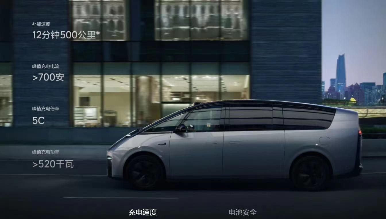 動(dòng)力及續(xù)航方面,理想Mega預(yù)計(jì)將配備一塊102.7千瓦時(shí)的5C麒麟電池,最大續(xù)航里程可達(dá)700公里,補(bǔ)能上可實(shí)現(xiàn)充電12分鐘續(xù)航增加500公里。
